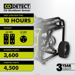 3600-Watt Generator with CO Shutdown Sensor RYOBI 4FRR0545 Tools