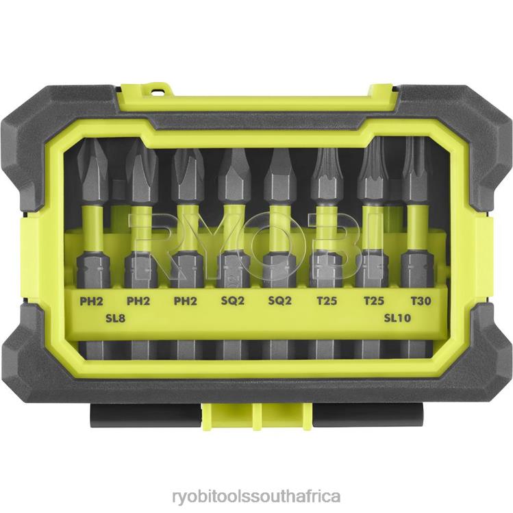 RYOBI introduces the 10 PC. Impact Drive Bit Set with Belt Clip Storage Case. This kit features a wide assortment of impact rated bits that have 3X longer life. The rotating belt clip case provides unique bit storage versatility. The case can be hung up by a nail or peg on your workbench, or clipped onto your belt for on the go, mobile tasks. The clear case allows you to easily identify your bits for efficiency during all steps of your project. The 2 in. bits feature a TORSION ZONE that is engineered to absorb the high torque and demand that comes with the use of an impact driver. The green band on bits makes it easy to find in your work bench, tool box, and job site. This set includes (3) 2″ PH2, (2) SQ2 Bit, (2) Torx #25, (1) Torx #30, (1) SL8, and (1) SL10.
