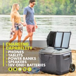 The RYOBI 14 Watt Foldable Solar Panel powers any small electronic device with a USB-A or USB-C port directly from the sun. It is ideal for powering your phones, tablets, power banks, speakers, and even your RYOBI 18V ONE+ batteries when combined with a compatible RYOBI power source. It can charge a RYOBI 18V ONE+ 2Ah battery in under 4 hours and your phone in as little as 2 hours and 20 minutes. The 14 Watt solar panel maximizes your power source portability, weighing in at only 1 pound and measuring 12.15”x 6.5” when folded. The compact, lightweight, foldable design makes storing and transporting easy, so you can take it with you to charge devices when hiking, camping, at the beach, and anywhere under the sun where you’d need portable power. It can be opened up flat on the ground to capture light during peak sunlight hours, or can be strung up at a variety of angles using the (7) integrated hanging loops to maximize the amount of light it captures. The RYOBI 14 Watt Solar Panel is backed by the RYOBI 3-Year Manufacturer’s Warranty and includes the RYi14SP 14 Watt Foldable Solar Panel and an Operator’s Manual.