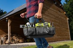 The RYOBI 18″ Tool Bag is designed to withstand the toughest working conditions with the heavy duty 1680D pockets and water resistant material. The 18 pockets, integrated tape measure clip, level strap, and wide mouth opening provide easy tool access to keep you organized on the go. The comfortable padded shoulder strap and easy close zipper provides a seamless experience as you move from place to place.