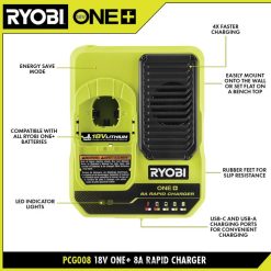 - Recharge on any 18V ONE+ Charger