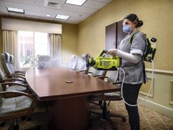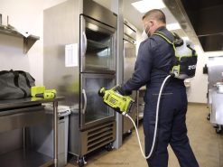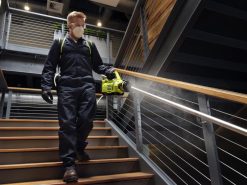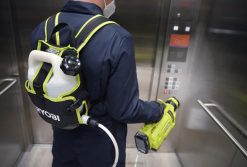 Buy Now At The Home Depot ProThe RYOBI 18V ONE+ Cordless 1 Gallon Electrostatic Sprayer allows you to spray water-soluble disinfectants and other cleaning solutions with the convenience and freedom of battery power. RYOBI Electrostatic Sprayers utilize best in class electrostatic charging technology to positively charge particles in the solution being sprayed, to deliver quicker and better coverage of surfaces. These charged particles enable solutions to more effectively adhere to and cover a wide array of surfaces. You can spray up to 30 gallons per charge with the included 18V ONE+ battery. This sprayer comes with two 18V ONE+ 2.0 Ah Batteries to double your coverage. The comfortable backpack design allows for comfortable, one-handed operation and the holster is designed for right-handed or left-handed use. Engage the on/off switch to activate the electrostatic technology, or to deactivate it when using chemicals best suited for conventional spraying. The 3-in-1 Adjustable Nozzle Selector allows you to choose from three spray patterns for a variety of spraying applications. Simply turn the nozzle to choose between low, medium, and high, spraying 65 microns up to 2 ft. away, 85 microns up to 5 ft. away and 160 microns up to 10 ft. away. The large one-gallon tank is designed with a handle for easy transport when filling and easily detaches from the unit for removing excess liquid or switching between tanks.