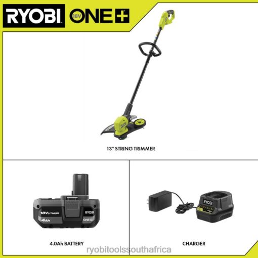 Enter the RYOBI 18V ONE+ System with the 18V ONE+ 13” String Trimmer/Edger Kit. The powerful motor allows you to tackle weeds around medium sized yards with extended runtime. Experience exceptional performance with just the pull of a trigger. Achieve a longer runtime or more aggressive cut with the adjustable 11” to 13” cut swath. The auto-feed head reloads string and advances line with each pull of the trigger. For ultimate convenience, turn your string trimmer into an edger for clean, precise cuts around your sidewalks and driveways with the pivoting head edger function. For more control while trimming along fences, mailboxes, and flower beds, utilize the variable speed trigger. This 18V ONE+ 13” String Trimmer/Edger Kit is backed by the RYOBI 3-Year Manufacturer’s Warranty and includes P20018 18V ONE+ 13″ String Trimmer/Edger, PBP005 18V 4Ah Lithium Battery, PCG002 18V Charger, Grass Deflector, Front Handle, and Operator’s Manuals.