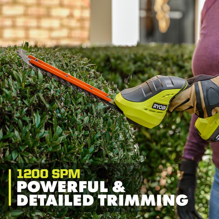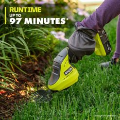 Expand your 18V ONE+ System with the 18V ONE+ Shear/Shrubber kit. The powerful motor provides 1,200 strokes per minute for detailed trimming. Enjoy up to 1 hour and 37 minutes of runtime with the included 18V ONE+ 2Ah battery. Tackle smaller hedges with precision using the 8” shrubber with a 5/16” cut capacity. Quickly transition from a shrubber to a shear in seconds with tool-free blade change. Trim patches of grass and weeds in tight areas that your mower can’t reach like around a mailbox or flower bed with the 4” grass shearing blade. Experience exceptional performance with the pull of a trigger, without the hassle of gas or cords. With dual action blades, you can power through hedges with reduced vibration and less fatigue. The compact and lightweight design reduces fatigue and increases control while working in delicate areas. Plus, this shear/shrubber is compatible with the shear/shrubber caddy, allowing upright cutting for added comfort and added accessibility (caddy sold separately). Best of all, it’s part of the RYOBI ONE+ system – Any 18V ONE+ battery works with any 18V ONE+ product. The shear/shrubber and battery are backed by a 3-year manufacturer’s warranty. This kit includes the P2908 18V Shear Shrubber, PBP006 18V 2Ah Lithium-ion Battery, PCG002 18V Charger, 4″ Grass Shearing Blade, 8″ Shrubber Blade, and Operator’s Manuals.