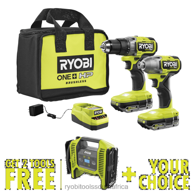 The RYOBI 18V ONE+ HP Brushless 2-Tool Combo Kit includes a 1/2″ Drill/Driver, 1/4″ Impact Driver, (2) 18V ONE+ 2Ah Lithium HIGH PERFORMANCE Batteries, charger & tool bag with FREE 18V ONE+ Dual Function Inflator/Deflator and FREE select tool of choice. The 1/2″ Drill/Driver features a brushless motor, delivering up to 20% faster drilling and up to 50% more torque saving time and energy per application. Its 750 in-lbs. of torque maximizes output power when drilling through tough materials. The 1/4″ Impact Driver features a brushless motor delivering up to 25% faster driving. The brushless motor delivers up to 2,200 in-lbs. of torque, providing this tool the power to drive longer fasteners through tough materials. Best of all, it is part of the RYOBI ONE+ System that all work on the same battery platform. This 18V ONE+ HP Brushless 2-Tool Combo Kit is backed by the RYOBI 3-Year Manufacturer’s Warranty and includes PBLDD01 18V ONE+ HP Brushless 1/2″ Drill/Driver, PBLID01 18V ONE+ HP Brushless 1/4″ Impact Driver, (2) PBP003 18V ONE+ 2Ah Lithium HIGH PERFORMANCE Batteries, Charger, Bag, and operator’s manuals with FREE P747 18V ONE+ Dual Function Inflator/Deflator and FREE select tool of choice.