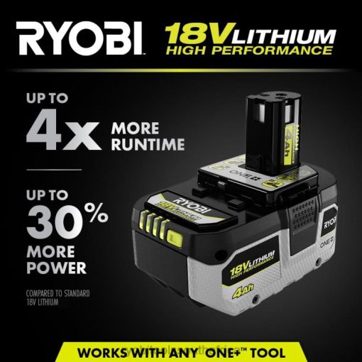 Enter the RYOBI 18V ONE+ System with the 18V ONE+ 4Ah Lithium-ion HIGH PERFORMANCE Battery. This 4Ah battery features up to 4X more runtime than the previous model increasing overall efficiency. INTELLICELL battery technology features advanced electronics allowing batteries to last longer, think smarter and deliver up to 30% more power. The COOL-CORE design reduces temperature to optimize battery performance and extend battery life. Advanced lithium-ion cells maximize performance and runtime during demanding applications. The robust design and anti-vibration technology increases durability and enhances user experience. This battery features a high visibility LED fuel gauge to clearly indicate remaining runtime. Easily install and remove the battery with secure quick-release latches. Pair this Lithium-ion HIGH PERFORMANCE battery with any 18V ONE+ HP tool to leverage high performance brushless motors and advanced electronics for more power, longer runtime and the overall best experience on the 18V ONE+ system. This 18V ONE+ 4Ah Lithium-ion HIGH PERFORMANCE Battery is backed by the RYOBI 3-Year Manufacturer’s Warranty and includes (1) PBP004 18V ONE+ 4Ah Lithium-ion HIGH PERFORMANCE Battery and Operator’s Manual. Charger sold separately.