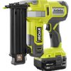 RYOBI introduces the 18V ONE+ 16-Gauge Cordless AirStrike Finish Nailer with 1.5 Ah Battery and Charger. This Finish Nailer features AirStrike Technology, which eliminates the need for noisy compressors, bulky hoses, or expensive gas cartridges. This means faster setup and easy maneuverability on the job site. This Straight Finish Nailer is capable of sinking up to 2-1/2 in. nails in hardwoods. The tool-free depth of drive adjustment allows for proper setting of nail heads. This nailer allows for extended periods of continuous work by sinking up to 1,000 nails per charge. It additionally offers a 78% smaller nose for tight spot access and superior drive quality, compared to P325. There is also a convenient adjustment dial to regulate air pressure speed for optimal performance. Great for crown molding, baseboard and exterior trim, this Finish Nailer is the perfect addition to any carpenter or DIYer’s tool collection. The included battery and charger are compatible with all RYOBI 18V ONE+ Tools. This kit is backed by the RYOBI 3-Year Manufacturer’s Warranty and includes 2 non-marring pads, a 1.5 Ah Battery, an 18V Charger, and operator’s manuals.