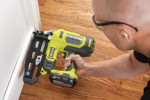 RYOBI introduces the 18V ONE+ 16-Gauge Cordless AirStrike Finish Nailer with 1.5 Ah Battery and Charger. This Finish Nailer features AirStrike Technology, which eliminates the need for noisy compressors, bulky hoses, or expensive gas cartridges. This means faster setup and easy maneuverability on the job site. This Straight Finish Nailer is capable of sinking up to 2-1/2 in. nails in hardwoods. The tool-free depth of drive adjustment allows for proper setting of nail heads. This nailer allows for extended periods of continuous work by sinking up to 1,000 nails per charge. It additionally offers a 78% smaller nose for tight spot access and superior drive quality, compared to P325. There is also a convenient adjustment dial to regulate air pressure speed for optimal performance. Great for crown molding, baseboard and exterior trim, this Finish Nailer is the perfect addition to any carpenter or DIYer’s tool collection. The included battery and charger are compatible with all RYOBI 18V ONE+ Tools. This kit is backed by the RYOBI 3-Year Manufacturer’s Warranty and includes 2 non-marring pads, a 1.5 Ah Battery, an 18V Charger, and operator’s manuals.