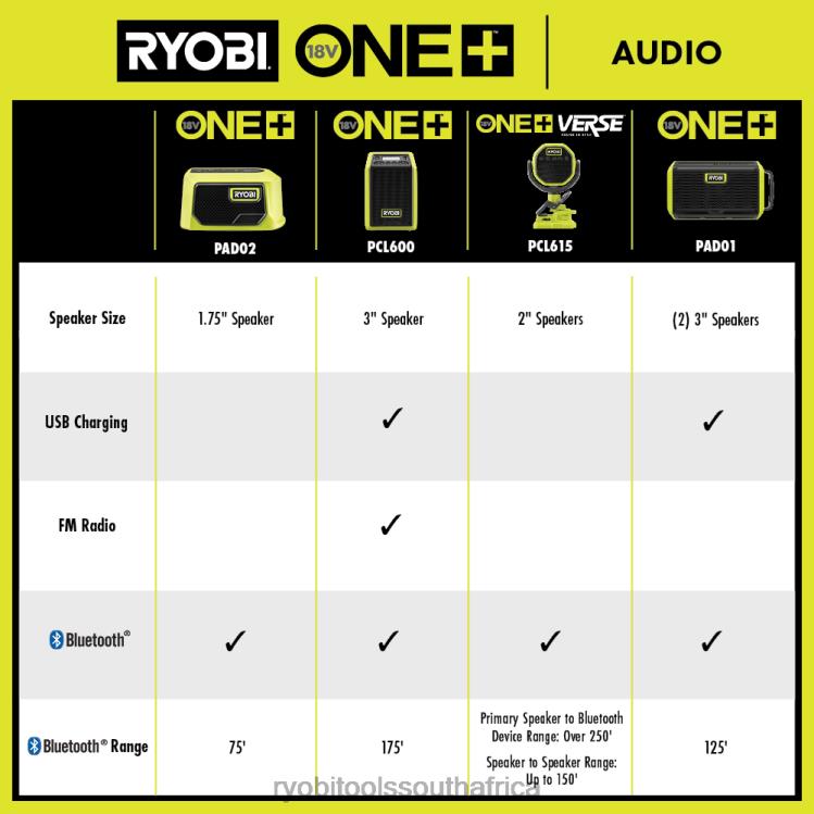 18V ONE+ Compact Bluetooth Radio/Speaker RYOBI 4FRR0465 Lighting Lifestyle and Recreation
