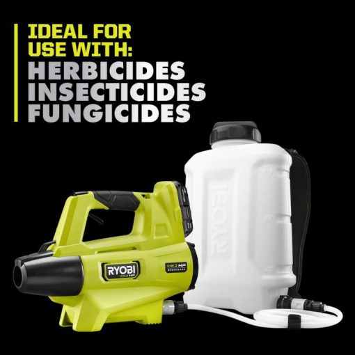 - Spray up to 28 Gallons per Charge With Fan Off or 5 Gallons per Charge With Fan On With a RYOBI 18V ONE+ 2Ah Battery