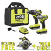 The RYOBI 18V ONE+ HP Brushless 2-Tool Combo Kit includes a 1/2″ Drill/Driver, 1/4″ Impact Driver, (2) 18V ONE+ 2Ah Lithium HIGH PERFORMANCE Batteries, charger & tool bag with FREE 18V ONE+ HP Compact Brushless One-Handed Reciprocating Saw and FREE select tool of choice. The 1/2″ Drill/Driver features a brushless motor, delivering up to 20% faster drilling and up to 50% more torque saving time and energy per application. Its 750 in-lbs. of torque maximizes output power when drilling through tough materials. The 1/4″ Impact Driver features a brushless motor delivering up to 25% faster driving. The brushless motor delivers up to 2,200 in-lbs. of torque, providing this tool the power to drive longer fasteners through tough materials. Best of all, it is part of the RYOBI ONE+ System that all work on the same battery platform. This 18V ONE+ HP Brushless 2-Tool Combo Kit is backed by the RYOBI 3-Year Manufacturer’s Warranty and includes PBLDD01 18V ONE+ HP Brushless 1/2″ Drill/Driver, PBLID01 18V ONE+ HP Brushless 1/4″ Impact Driver, (2) PBP003 18V ONE+ 2Ah Lithium HIGH PERFORMANCE Batteries, Charger, Bag, and operator’s manuals with FREE PSBRS01B 18V ONE+ HP Compact Brushless One-Handed Reciprocating Saw and FREE select tool of choice.