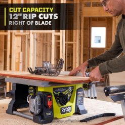 Enhance your RYOBI 18V ONE+ System with the RYOBI 18V ONE+ HP Brushless 8-1/4″ Table Saw. ONE+ HP Technology combines a powerful brushless motor, advanced electronics, and High Performance lithium-ion batteries to deliver corded cutting performance, with up to 4,500 RPM for controlled and accurate cuts. This Table Saw has a 12″ rip cut capacity, right of the blade, and the ability to rip up to 240 linear feet per charge, when using the (2) included 4Ah High Performance batteries. Additional features include an adjustable self-aligning material fence, a rack and pinion blade height adjustment to ensure accurate depth control, and a steel frame that provides added durability and strength. Also, enjoy the convenience of integrated on-board storage for all accessories. This brushless table saw is backed by the RYOBI 3-Year Manufacturer’s Warranty and includes the 18V ONE+ HP brushless 8-1/4″ table saw, push stick, blade guard assembly with anti-kickback pawls, carbide-tipped blade, rip fence, miter gauge, blade wrenches, (2) 18V 4Ah high performance batteries, charger and operator’s manuals.