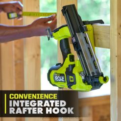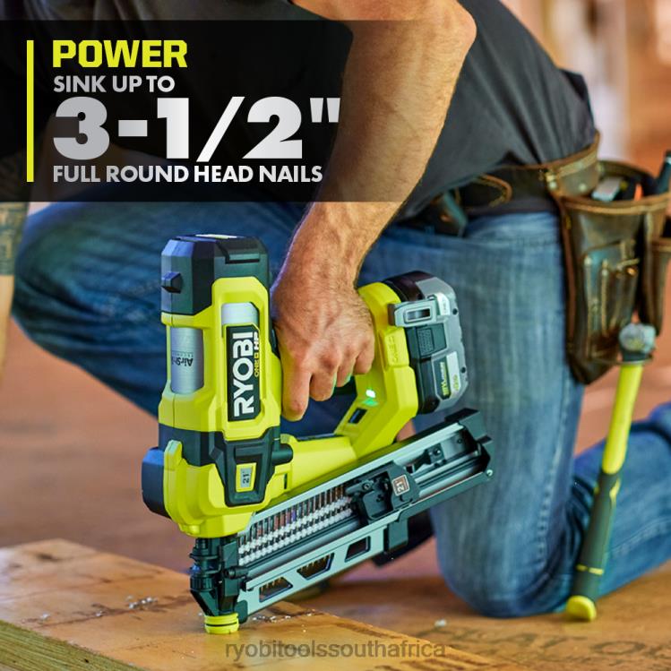 Enhance your RYOBI 18V ONE+ System with the 18V ONE+ HP Brushless 21 degree Framing Nailer. ONE+ HP Technology delivers more power, runtime, durability and speed utilizing brushless motors, advanced electronics and HIGH PERFORMANCE lithium technology. Enjoy the convenience of AirStrike Technology, eliminating the need for noisy compressors, bulky hoses and expensive gas cartridges. This cordless framing nailer provides instant driving speed and the ability to drive up to 750 nails per charge on a 4Ah HIGH PERFORMANCE battery. The selectable drive switch allows you to choose between single sequential and contact actuation modes, for either precise or rapid, repetitive nail placement. This framing nailer delivers the power to sink up to 3-1/2″ full round head nails. The tool-free depth of drive adjustment ensures that you are able to drive nails flush every time, even in the most dense materials. The on-board air fill valve enables field serviceability, which results in decreased downtime for you and your crew, and the integrated rafter hook allows for safe and easy on the job storage. The 18V ONE+ HP Brushless 21 degree Framing Nailer is backed by the RYOBI 3-Year Manufacturer’s Warranty and includes the 18V ONE+ Framing Nailer, 18V ONE+ 4Ah HIGH PERFORMANCE Lithium Battery, 18V ONE+ Charger, rafter hook, belt hook, hex key, non-marring pad and operator’s manual.