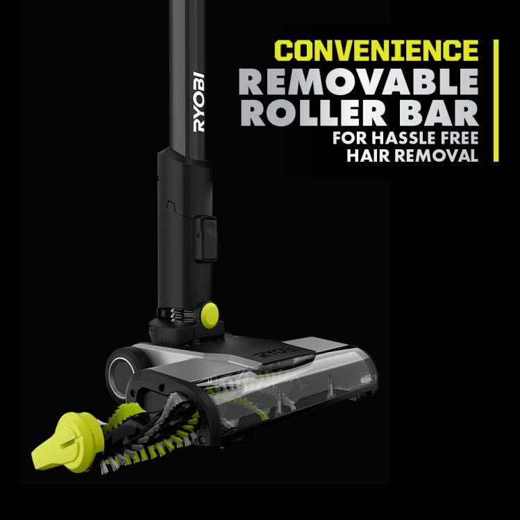 RYOBI introduces the 18V ONE+ HP Cordless Pet Stick Vac Kit to our cleaning category, providing cordless convenience for floor-to-ceiling cleaning. This improved stick vac not only delivers 2x more suction power but is also 30% lighter and 50% quieter. Combine an intelligent brushless motor with advanced electronics and a 4Ah high performance battery and you’ve got a vacuum that runs longer (up to 60 minutes per charge) and more efficiently. The cyclonic filter traps up to 99.9% of dust and allergen matter, including pet fur. LED lights on the roller bar illuminate dust, dirt, and hair. The easy to empty dust cup and removable roller bar allows you to quickly clean and maintain your vacuum. By removing the extension wand, you now have a hand vac for cleaning messes in cars, on stairs, on delicate surfaces, and in tight spaces with the included crevice tool and dust brush. This stick vac stands on its own and includes a wall mount to conveniently store after use. Backed by the RYOBI 3-Year Manufacturer’s Warranty, the 18V ONE+ HP Cordless Pet Stick Vac Kit includes a Crevice Tool, Dust Brush, Wall Mount, 18V 4Ah High Performance Battery, Charger, and Operator’s Manuals.