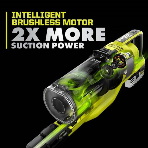 RYOBI introduces the 18V ONE+ HP Cordless Pet Stick Vac Kit to our cleaning category, providing cordless convenience for floor-to-ceiling cleaning. This improved stick vac not only delivers 2x more suction power but is also 30% lighter and 50% quieter. Combine an intelligent brushless motor with advanced electronics and a 4Ah high performance battery and you’ve got a vacuum that runs longer (up to 60 minutes per charge) and more efficiently. The cyclonic filter traps up to 99.9% of dust and allergen matter, including pet fur. LED lights on the roller bar illuminate dust, dirt, and hair. The easy to empty dust cup and removable roller bar allows you to quickly clean and maintain your vacuum. By removing the extension wand, you now have a hand vac for cleaning messes in cars, on stairs, on delicate surfaces, and in tight spaces with the included crevice tool and dust brush. This stick vac stands on its own and includes a wall mount to conveniently store after use. Backed by the RYOBI 3-Year Manufacturer’s Warranty, the 18V ONE+ HP Cordless Pet Stick Vac Kit includes a Crevice Tool, Dust Brush, Wall Mount, 18V 4Ah High Performance Battery, Charger, and Operator’s Manuals.