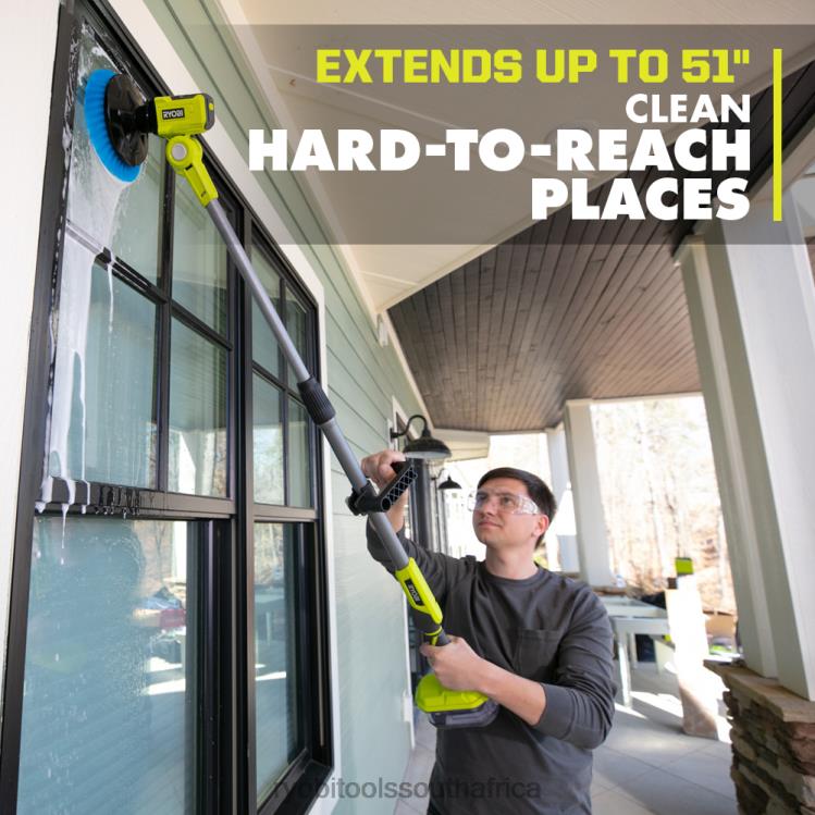 RYOBI introduces the 18V ONE+ Cordless Power Scrubber. As the industry’s most powerful handheld scrubber, this cleaning tool is able to power through tough stains and grime. Telescoping up to 51 in., this handheld scrubber is perfect for reaching those hard to reach high or low areas. This scrubber features a 6 position articulating head, allowing users to customize the brush angle for the ultimate clean. With a runtime of up to 2 hours, this tool can handle the largest of cleaning projects. All RYOBI scrubbers have an IPX7 Water Resistance Rating, allowing these cleaning tools to be submerged in up to 3 feet of water for 30 minutes. This 18V ONE+ Cordless Telescoping Power Scrubber is compatible with additional interchangeable triangle connection brushes in the RYOBI Cleaning Accessories lineup. Best of all, it is part of the RYOBI ONE+ System – Any 18V ONE+ Battery Works With Any 18V ONE+ Product. Backed by the RYOBI 3-Year Manufacturer’s Warranty, the 18V ONE+ Cordless Telescoping Power Scrubber Kit includes an 18V ONE+ 2Ah Lithium Battery, an 18V ONE+ Charger, a 6″ Medium Stiffness Bristle Brush and an operator’s manual. Battery and charger sold separately.