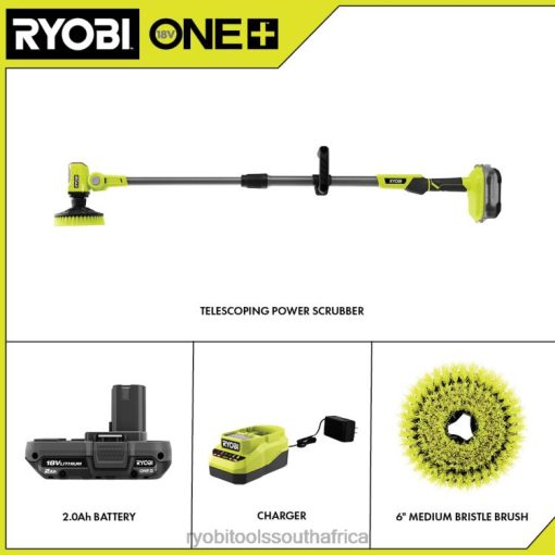 RYOBI introduces the 18V ONE+ Cordless Power Scrubber. As the industry’s most powerful handheld scrubber, this cleaning tool is able to power through tough stains and grime. Telescoping up to 51 in., this handheld scrubber is perfect for reaching those hard to reach high or low areas. This scrubber features a 6 position articulating head, allowing users to customize the brush angle for the ultimate clean. With a runtime of up to 2 hours, this tool can handle the largest of cleaning projects. All RYOBI scrubbers have an IPX7 Water Resistance Rating, allowing these cleaning tools to be submerged in up to 3 feet of water for 30 minutes. This 18V ONE+ Cordless Telescoping Power Scrubber is compatible with additional interchangeable triangle connection brushes in the RYOBI Cleaning Accessories lineup. Best of all, it is part of the RYOBI ONE+ System – Any 18V ONE+ Battery Works With Any 18V ONE+ Product. Backed by the RYOBI 3-Year Manufacturer’s Warranty, the 18V ONE+ Cordless Telescoping Power Scrubber Kit includes an 18V ONE+ 2Ah Lithium Battery, an 18V ONE+ Charger, a 6″ Medium Stiffness Bristle Brush and an operator’s manual. Battery and charger sold separately.