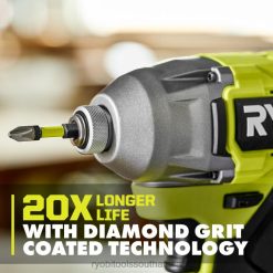 Compliment your tool collection with RYOBI Diamond Grit Coated Technology. The 6 PC. 2 in. Diamond Grit Impact Drive Bits offer a premium driving solution. Diamond Grit hardens tip for improved durability and 20X longer life. Diamond Grit holds tight to fastener for pre-driving control and 2X stronger grip. Diamond Grit also improves fit and grabs fastener while driving for less stripped screws. The included belt clip provides portability and convenience This set includes Diamond Grit PH Bits: (6) PH2.