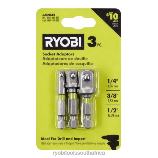 RYOBI Impact Rated Socket Adaptors are built to withstand the high torque and demand that comes with the use of an impact driver. These socket adaptors are 2 in. in length and have a 1/4 in. hex shank that can fit directly into a drill or impact driver. The set includes 1/4 in., 3/8 in. and 1/2 in. adaptors.