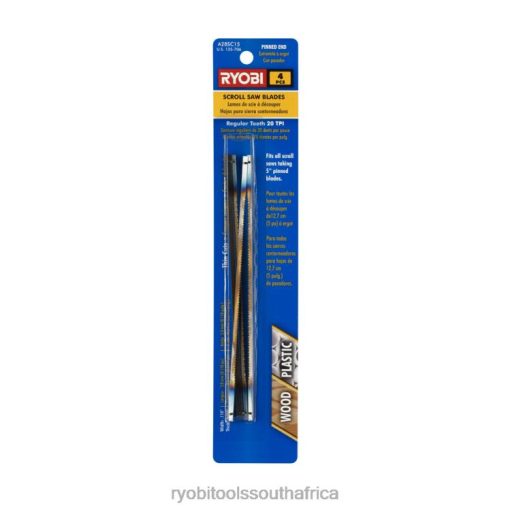 The Ryobi 4-Piece Regular Tooth Scroll Saw Blades (20 TPI) are made of high-carbon steel and are compatible with all scroll saws that take 5 in. pinned blades. The 20 TPI regular teeth are designed for thin cuts in wood and plastic. Blades are cross compatible with most scroll saws available on the market.