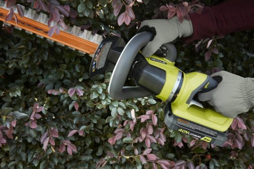 Expand your 40V system with the 40V 24” Hedge Trimmer Kit. RYOBI 40V technology delivers more power than a 19cc gas hedge trimmer, making it a true gas replacement without the hassle of gas or cords. Trim for up to 46 minutes of runtime with the included 40V 2Ah lithium battery. The 24” blades and a 1” cut capacity tackle thick hedges with ease, delivering gas performance with just the pull of a trigger, without the hassle of gas or cords. Plus, the rotating handle allows you to comfortably trim hedges and shrubs at all angles, while the HEDGESWEEP Debris Remover quickly and easily removes clippings as you work. Dual action blades reduce vibration and fatigue, making your trimming experience more comfortable. Best of all, it is part of the RYOBI 40V System where any 40V battery works with any 40V product. This 40V Hedge Trimmer is backed by the RYOBI 5-year manufacturer’s warranty and the included battery is backed by the RYOBI 3-year battery warranty. This kit includes the RY40602 40V Hedge Trimmer, OP40204 40V 2Ah Lithium Battery, OP404 40V Charger, HEDGESWEEP Debris Remover, Scabbard, and Operator’s Manuals.