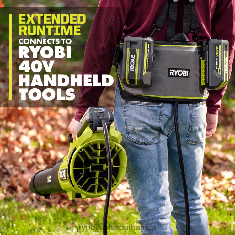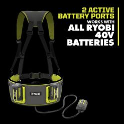 Expand your RYOBI 40-Volt system with the 40-Volt Belt Power Supply. This belt power supply helps you achieve extended runtime on RYOBI 40-Volt handheld tools by having extra batteries right by your side, even when you’re far from your house, garage or shed. Utilize power from the 2 active battery ports by plugging the 40-Volt adaptor into your 40-Volt handheld tool. The belt decreases fatigue by taking the weight of the batteries off the tool and features adjustable shoulder straps that offer additional support allowing you to work comfortably for longer tackling big jobs. This is especially beneficial when using a higher amp hour battery on tools, such as string trimmers, blowers, hedge trimmers and chainsaws. A convenient LED indicator on the adaptor shows remaining charge of the battery in use and the belt folds for compact storage when not in use. Best of all, it is part of the RYOBI 40-Volt System where any 40-Volt battery works with any 40-Volt product. This 40-Volt Belt Power Supply is backed by the RYOBI 3-Year Manufacturer’s Warranty and includes (1) OP40HBA 40-Volt Belt Power Supply and Operator’s Manual. Battery sold separately.
