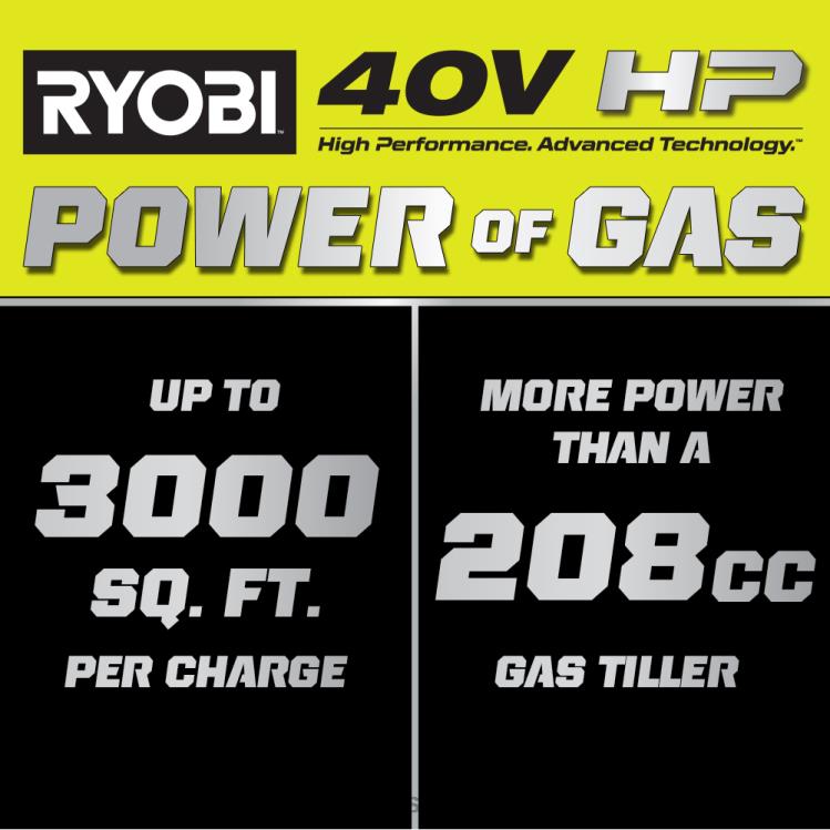 - 40V HP Technology Delivers More Power Than a 208cc Gas Tiller