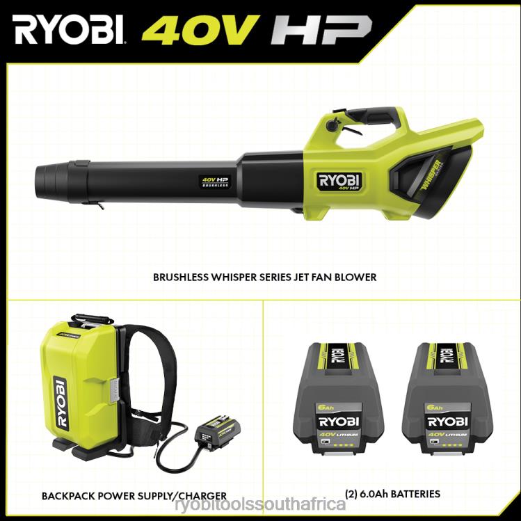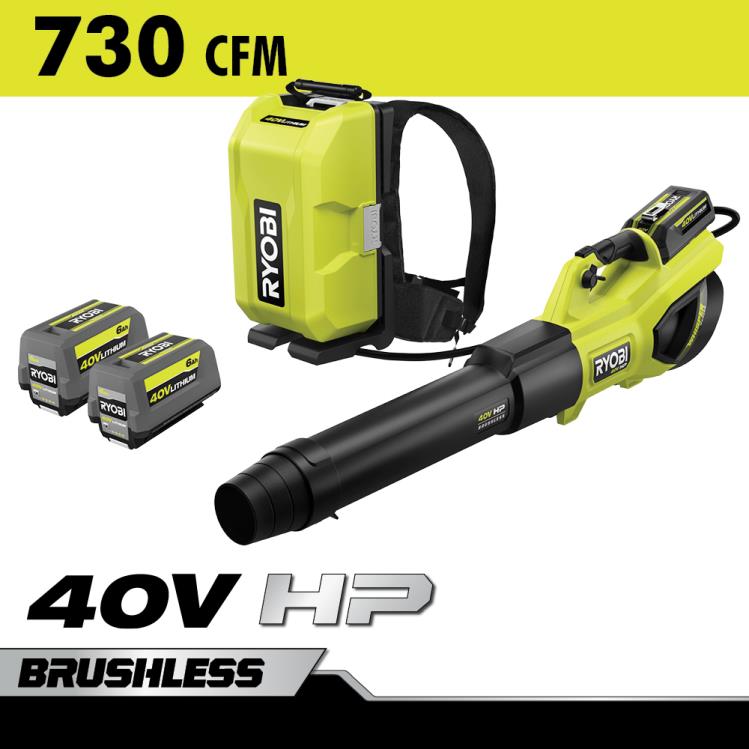 Enhance your 40V System with the 40V HP Cordless Jet Fan Blower Kit. Using 40V HP technology and a jet fan design, this blower delivers more power than a 27cc gas blower, making it a true gas replacement. This blower runs for up to 30 minutes when paired with the (2) included 40V 6Ah lithium batteries. 40V HP technology combines a brushless motor, advanced electronics, and high performance lithium technology to deliver 730 CFM and 190 MPH, making it ideal for tackling tough jobs like wet leaves and heavy lawn debris. The Whisper Series blower is engineered to be 86% quieter than gas, and even quieter than other cordless blowers, allowing you to work anytime without disturbing others. Experience gas performance with just the pull of a trigger. No gas, no maintenance and no hassle. The variable speed trigger and turbo button give you complete control of the output of air, so you can dial back when in delicate areas and engage the turbo button for clearing tougher debris. With two customizable speed tips for increased air speed and compatibility with other accessories, this blower provides ultimate versatility for your landscaping needs. Best of all, it is part of the RYOBI 40V System where any 40V battery works with any 40V product. This 40V HP Blower kit is backed by the RYOBI 5-year manufacturer’s warranty and 3-year manufacturer’s battery warranty. This kit includes the RY404010 40V Jet Fan Blower, (2) OP40605 40V 6Ah Lithium Batteries, OP40BPA 40V Integrated Charger, Blower Tube, (2) Speed Tips, and Operator’s Manuals.