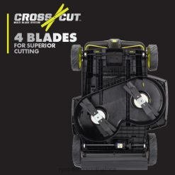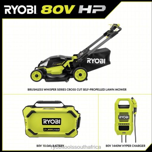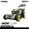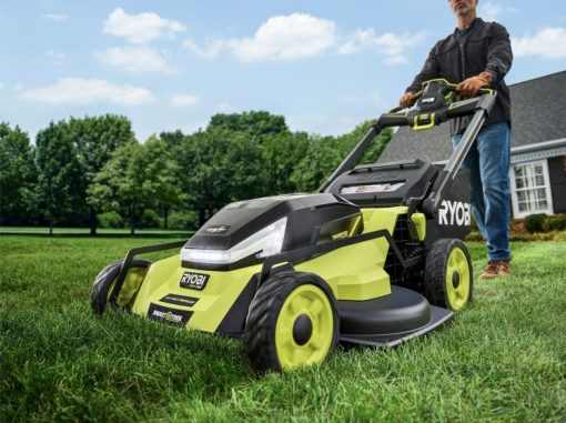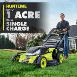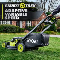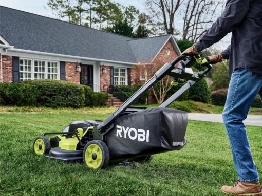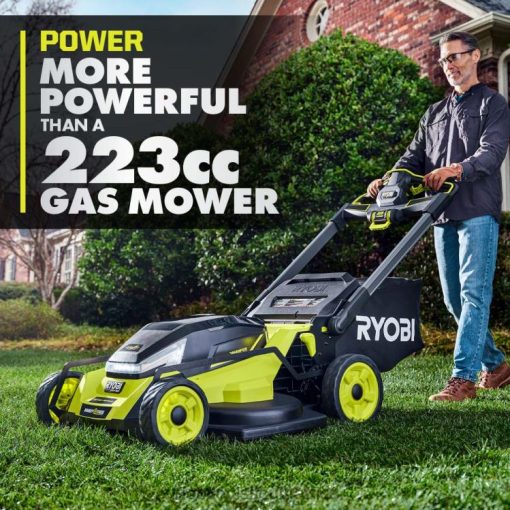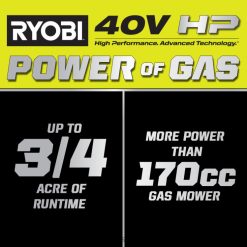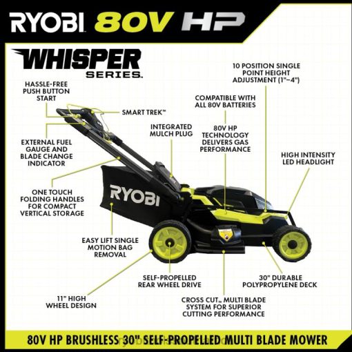 The RYOBI 80V HP Brushless 30″ WHISPER SERIES CROSS CUT Lawn Mower utilizes 80V HP technology to deliver a more efficient cutting experience than gas with the ease of RYOBI 80V battery power. The 80V HP technology delivers 35% more power for gas performance, making this new 30″ Lawn Mower more powerful than a 223cc gas mower. As part of the WHISPER SERIES, RYOBI’s quietest lineup of products, this mower is 70% quieter than a gas mower. With a simple push-button start, users can tackle up to 1 acre with up to 90 minutes of runtime on the included RYOBI 80V 10Ah lithium battery. The external fuel gauge shows the remaining battery life left while mowing, and when it is time to recharge, the included 80V Hyper Charger can recharge the battery in less than one hour. This mower is part of the RYOBI 80V HP brushless family of cordless products. When the job is complete, easy lift bag removal makes emptying grass clippings quick and convenient, one touch folding handles allow this mower to be stored easily out of the way in the garage or shed between mowing sessions. An 11″ high wheel design and high-intensity LED headlights combined with WHISPER SERIES engineering allow users to mow any time from dusk to dawn. This mower is backed by a five-year manufacturer warranty.
