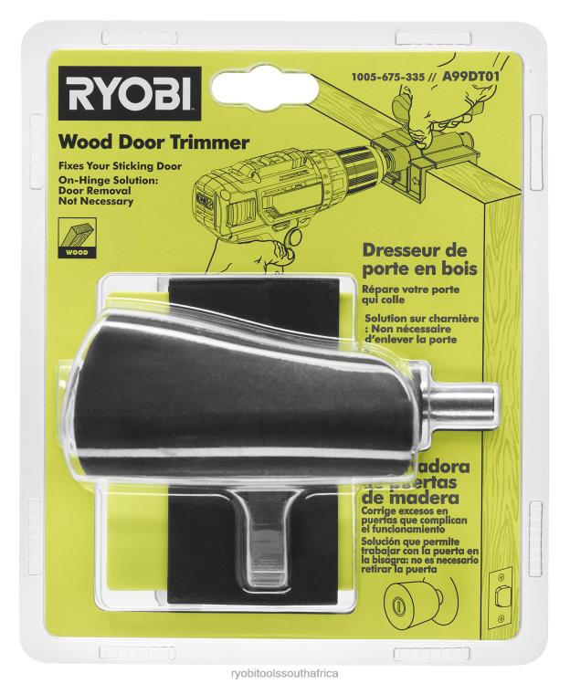 The RYOBI Wood Door Trimmer is the perfect solution for frustrating sticking doors. This unique trimmer requires only a standard drill, no additional materials, to shave off excess material along your door. Removing up to 1/32″per pass on 1-3/4″& 1-3/8″size doors, this trimmer is the best solution for most wooden sticking doors. This fast, easy solution prevents the need to pull out bulky sanders or planers. Best of all, your wood door can stay on-hinge, cutting your project time and effort in half.