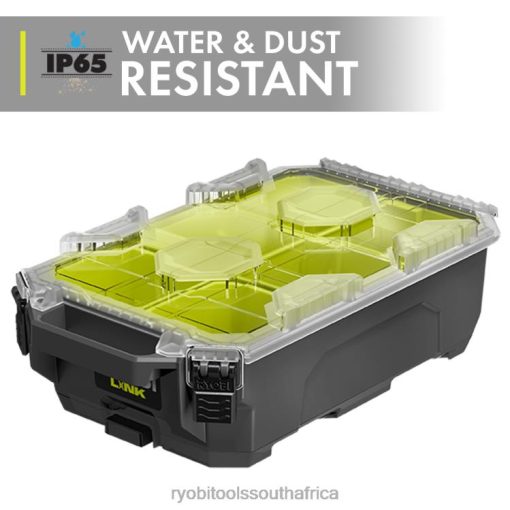 The RYOBI LINK Modular Storage System is revolutionizing the storage industry, enabling you to Organize, Access and Transport your life. The RYOBI LINK CompactSmall Parts Organizer provides tool storage in the toughest of situations, fully equipped with impact resistant material and a 25 lb. load capacity. Secure your portable tool storage with the IP65 rated which protects your items from water and dust in any environment. The integrated hand tool compartment and no-travel organizer bins provide maximum RYOBI tool storage organization, keeping everything in its place. Quickly identify what’s inside with the clear top and secure your items with a locking point. This is the perfect addition to your mobile tool box line up. Best of all, it is part of the RYOBI LINK Modular Storage System line of products that use the same locking technology to seamlessly connect your mobile and stationary storage needs. Own your space with RYOBI LINK Modular Storage System.