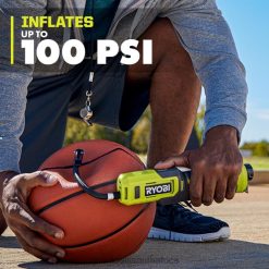 RYOBI introduces the USB Lithium High Pressure Inflator Kit. This USB Lithium High Pressure Inflator is the ideal solution for bicycle tires, top off of vehicle tires and sports balls to keep your day rolling. Utilize the digital pressure gauge for easy measurement reading and precise filling. The on-board LED worklight illuminates the application no matter the environment. With on-board storage, bring the included accessories and 6″ hose for on the go inflation. This product features an LED indicator to signal when the battery is charged (green) or has low battery (red) while in-use. The USB Lithium High Pressure Inflator Kit is part of the USB Lithium System that provides compact, portable, rechargeable solutions for cordless power and productivity. This USB Lithium High Pressure Inflator is backed by the RYOBI 2-Year Manufacturer’s Warranty and includes (1) FVIF51 USB Lithium High Pressure Inflator, (1) FVB01 USB Lithium 2Ah Battery, USB Cable, Sports Needle, Presta Valve Adaptor and Operator’s Manuals.